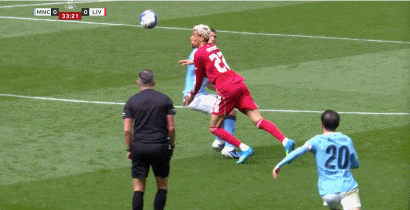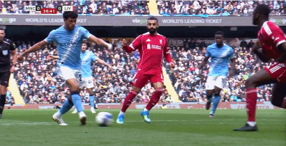 第45+2分钟,哈兰德接塞门约传中头球破门,曼城2-0领先利物浦!