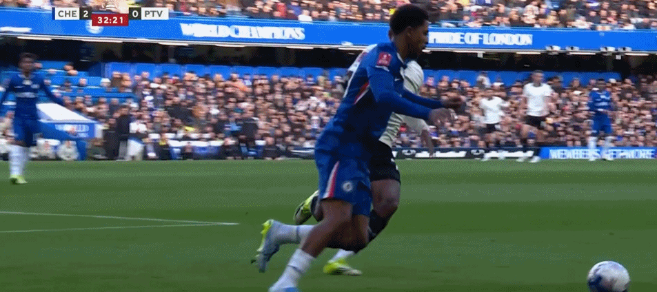 北京时间4月5日00:15,足总杯1/4决赛,切尔西主场迎战英甲球队维尔港。上半场,哈托禁区内抽射破门,内托助攻若昂-佩德罗扩大比分,半场结束前,帕尔默门前补射造成乔丹-加布里埃尔自摆乌龙,半场战罢,切尔西3-0领先维尔港。