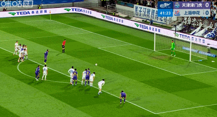 比赛进行到第42分钟,盖伊手球送点,谢蒂内点射建功帮助天津津门虎取得领先。