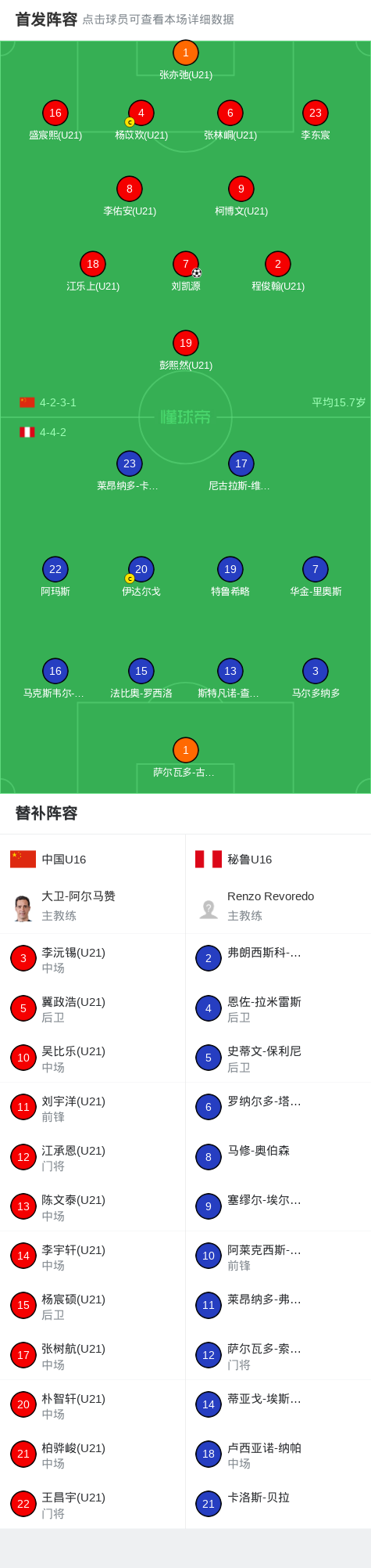第26分钟,刘凯源禁区前冷静调整后破门,U16国少1-0秘鲁U16