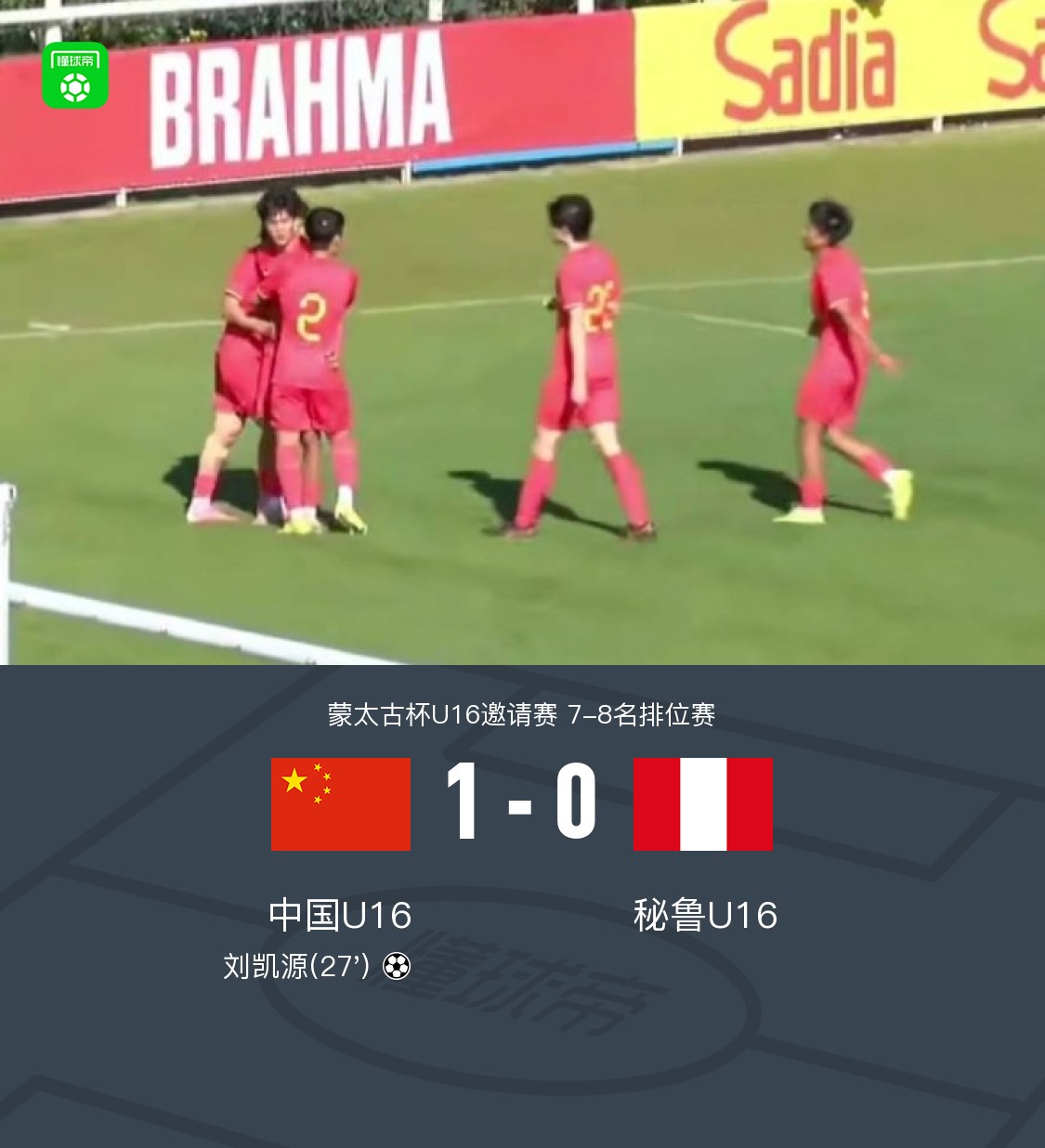 北京时间4月6日蒙太古杯U16邀请赛 7-8名排位赛,中国U16对阵秘鲁U16。上半场刘凯源禁区前冷静调整后破门。最终U16国少1-0秘鲁U16获得第7名。