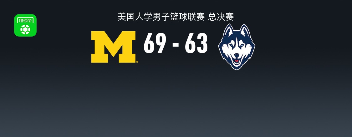 北京时间4月7日美国大学男子篮球联赛 总决赛,密歇根大学对阵康涅狄格大学。半场密歇根大学69-63康涅狄格大学,最终密歇根大学69-63康涅狄格大学。密歇根大学埃利奥特-卡多19分3板2助,亚克塞尔-伦德堡13分2板1助;康涅狄格大学亚历克斯·卡拉班17分11板2助,小塔里斯·里德13分14板。
