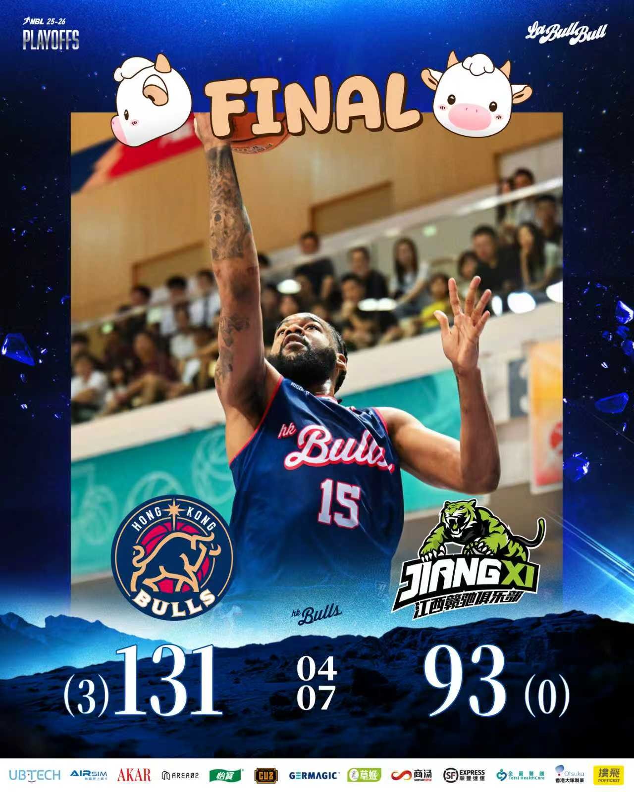 北京时间4月7日,全国男子篮球联赛(NBL)半决赛第三轮,香港金牛131-93战胜江西鲸裕清酒,从而以总比分3-0横扫晋级总决赛。