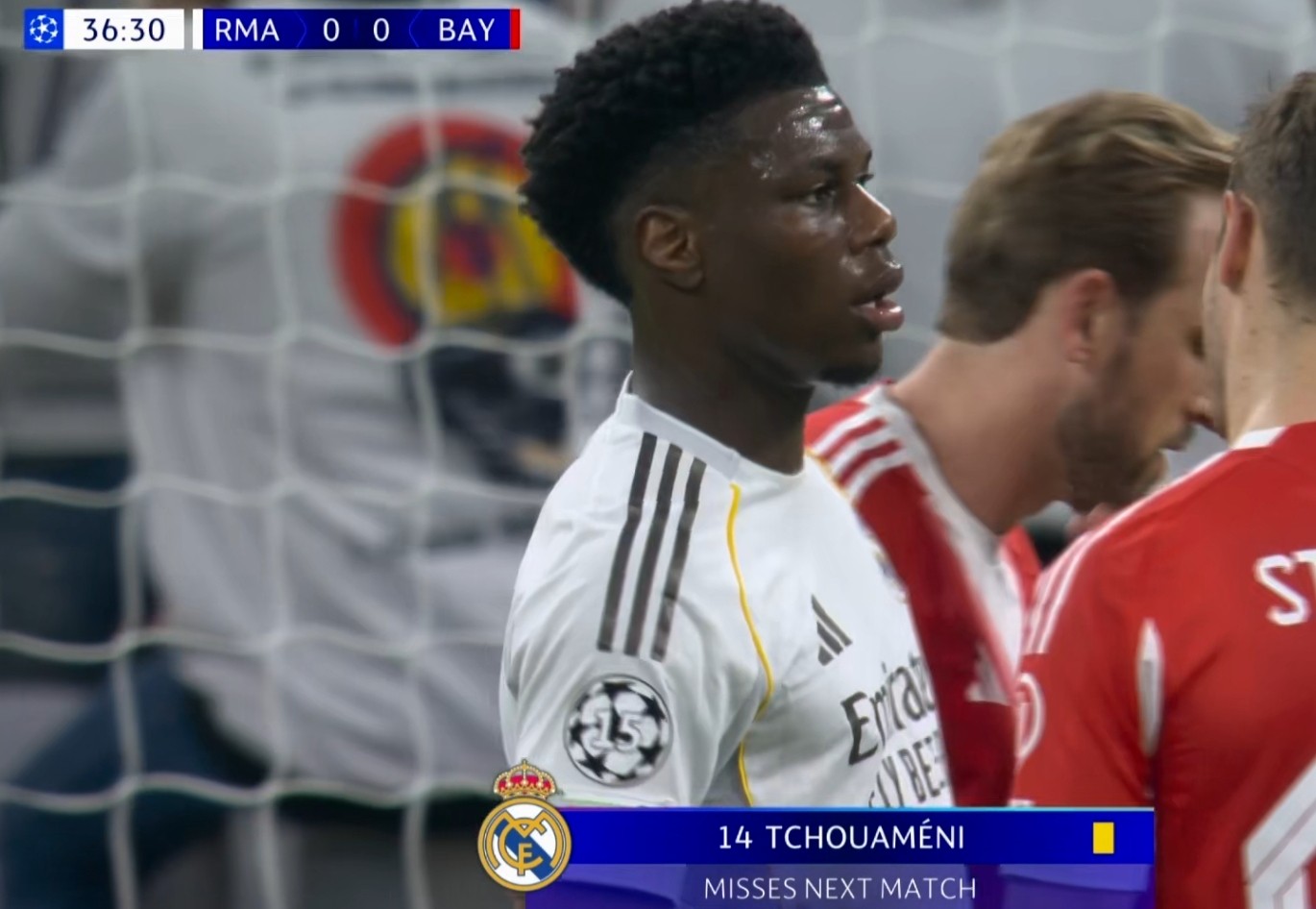 在面对奥利塞的高速前插时,楚阿梅尼放倒了对手,这也让这位法国后腰吃到黄牌。这是楚阿梅尼本赛季在欧冠赛场中吃到的第3张黄牌,依照欧冠规则,楚阿梅尼将因为累积3张黄牌而缺席次回合的比赛。目前,皇家马德里暂时0-1落后于拜仁。