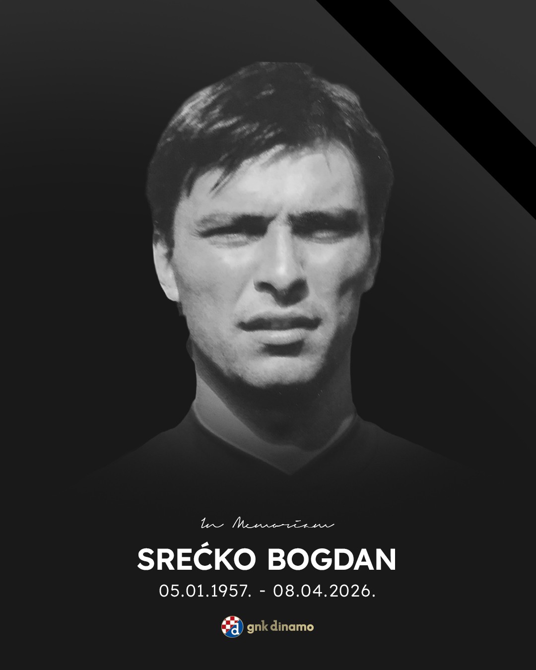 怀着巨大的悲痛和沉重的心情,我们在此宣布:我们永远失去了我们备受尊敬的足球运动员、萨格勒布迪纳摩俱乐部的象征之一、我们亲爱的且难以忘怀的斯雷奇科-博格丹(Srećko Bogdan)。