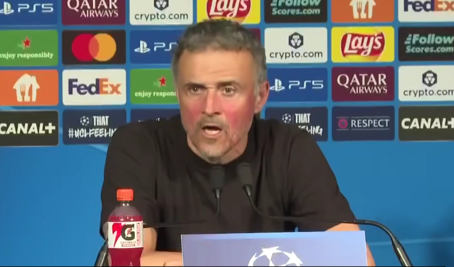 在主场2-0战胜利物浦的欧冠比赛后,巴黎主帅恩里克出席了新闻发布会并答记者问,以下为他的发言实录。