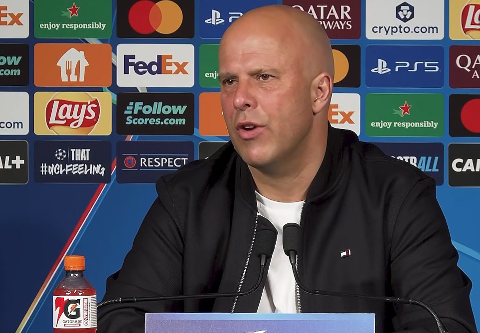 欧冠1/4决赛首回合,利物浦客场0-2不敌巴黎圣日耳曼,赛后,红军主帅斯洛特出席新闻发布会接受媒体提问。