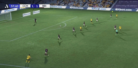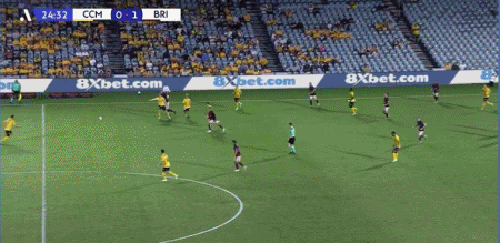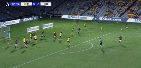 第4分钟,麦克加里传中,萨姆-克莱因头球破门,布里斯班狮吼1-0