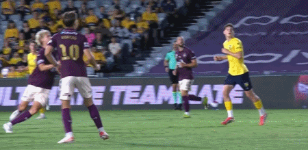 第90+3分钟,乔丹-劳顿头球补射破门扳平比分,布里斯班狮吼2-2