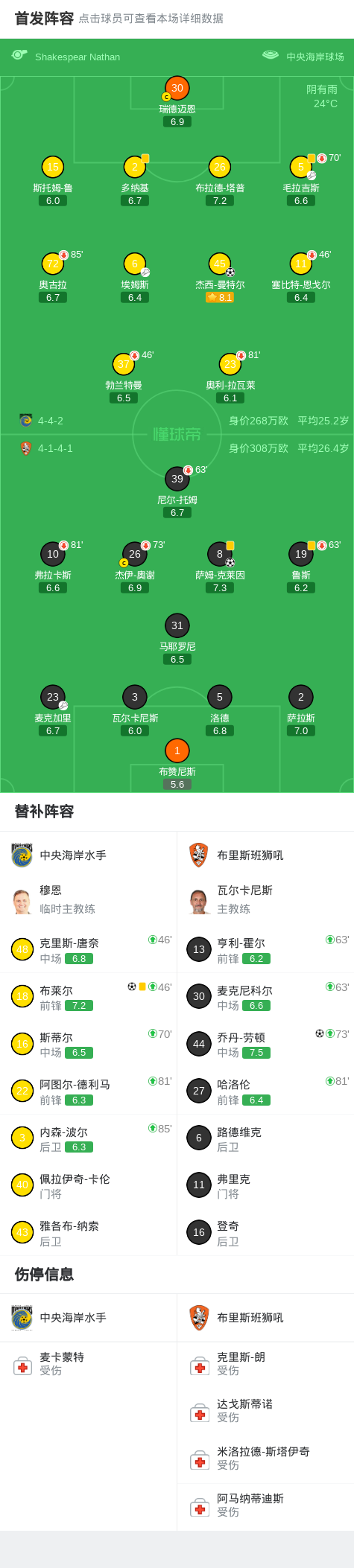 第58分钟,毛拉吉斯左路传中,布莱尔鱼跃头球破门,中央海岸水手2-1