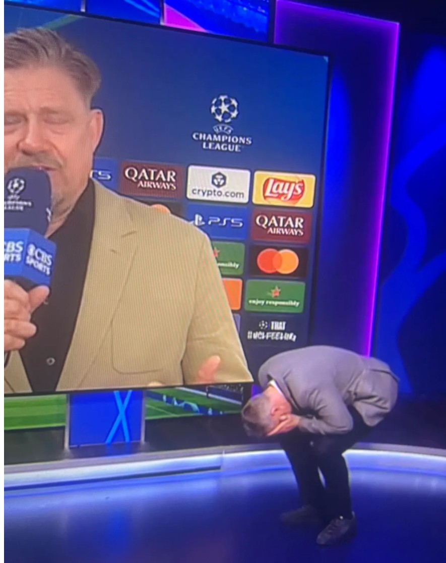 在利物浦输给巴黎之后,杰米-卡拉格与传奇门将彼得-舒梅切尔在演播室发生激烈争执,一旁的蒂埃里-亨利试图躲起来“逃避纷争”。