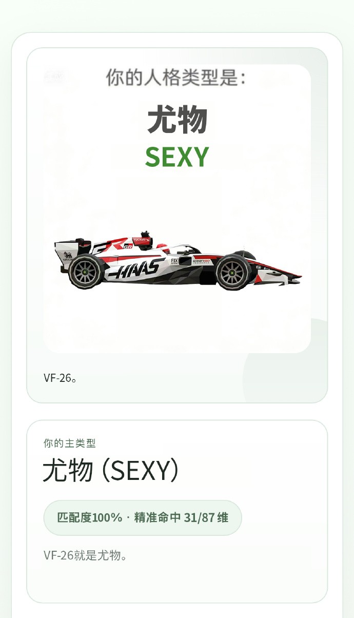 这是哈斯车队官方发出的“SBTI”梗图。所以,VF-26真是尤物吗?