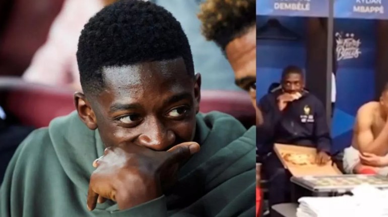 还有画面显示,登贝莱在法国国家队集训期间一边吃披萨,一边听主教练德尚给全队讲话。登贝莱也承认,自己仍然会享受一些并不属于日常饮食计划的食物。尽管他如今已经不再严格保持这种习惯,但在一些视频中,还是能看到他吃这些食物。