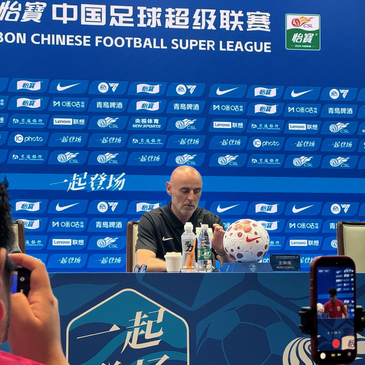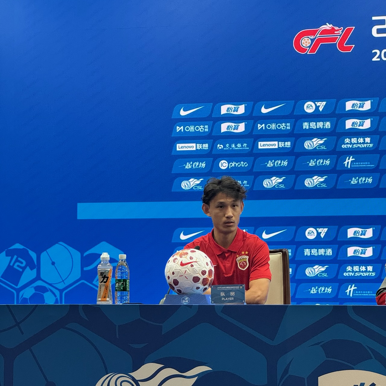 4月10日上午,2026赛季中超第一回合上海德比赛前新闻发布会在上海体育场举行。上海海港主帅穆斯卡特携队员王燊超出席。