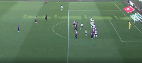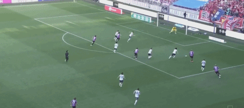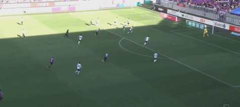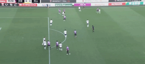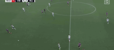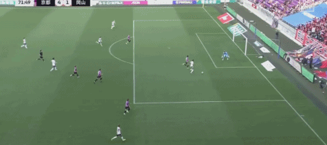 第45+5分钟,若昂-佩德罗传球,佐藤响小角度破门,京都不死鸟2-1冈山绿雉