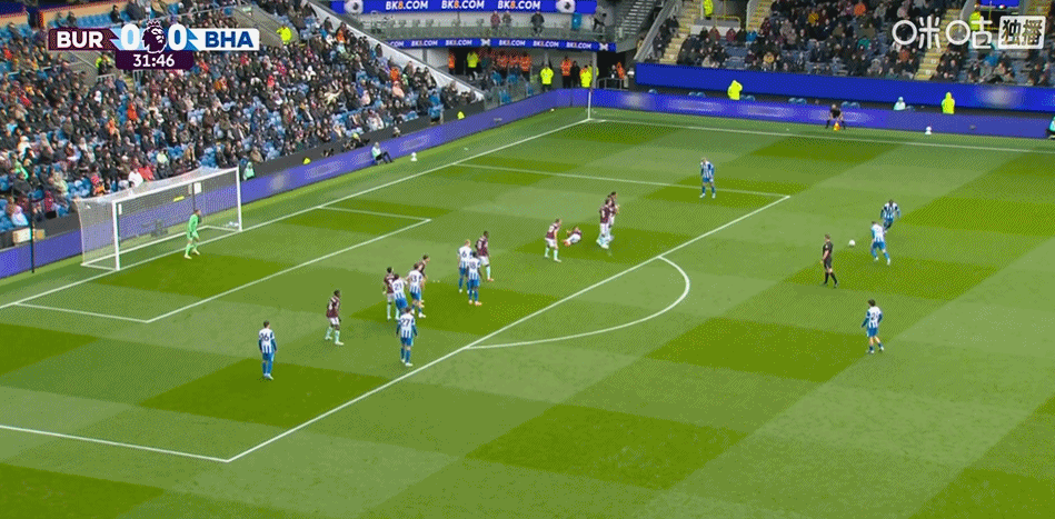 北京时间4月11日22:00,英超第32轮,伯恩利主场对阵布莱顿。上半场,杰登-安东尼进球被吹越位在先,扬库巴-明特远射被门将没收,格罗斯助攻魏费尔推射建功,半场战罢,伯恩利0-1布莱顿。
