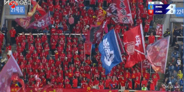 第38分钟,人数众多,镜头给到客场球迷