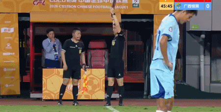 第35分钟,栾昊东拉人犯规,裁判出示黄牌警告