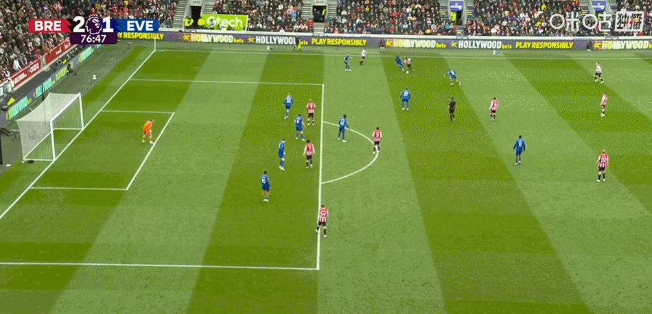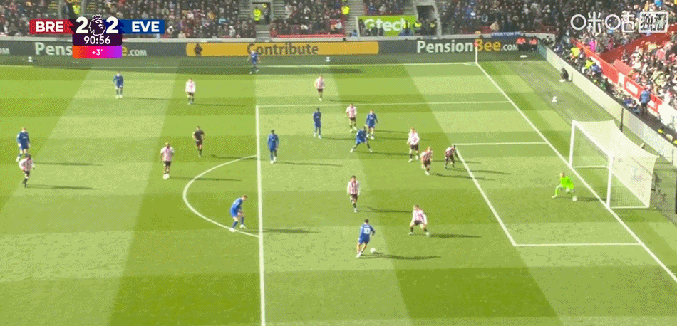 第90+1分钟,霍尔禁区内小角度抽射扳平比分!埃弗顿2-2