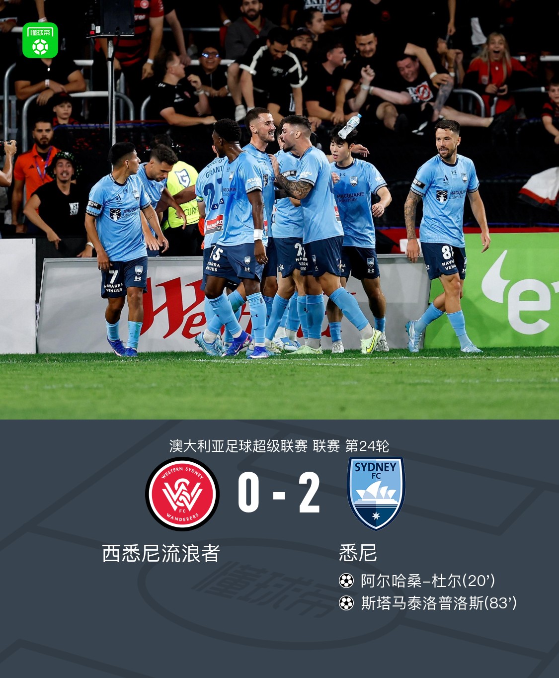 北京时间4月11日澳大利亚足球超级联赛第24轮,西悉尼流浪者主场迎战悉尼。比赛中,悉尼球员通过团队配合率先打破僵局,随后又凭借一次助攻扩大比分优势。最终,西悉尼流浪者0-2不敌悉尼,悉尼凭借两粒进球全取三分。