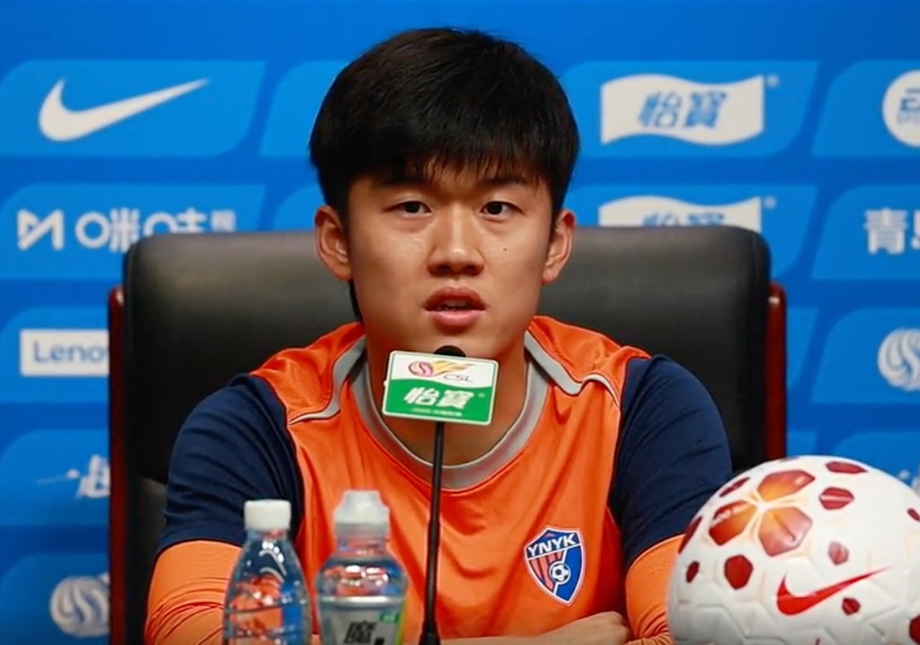 4月11日,云南玉昆对阵深圳新鹏城的赛前新闻发布会,球员杨梓豪出席。
