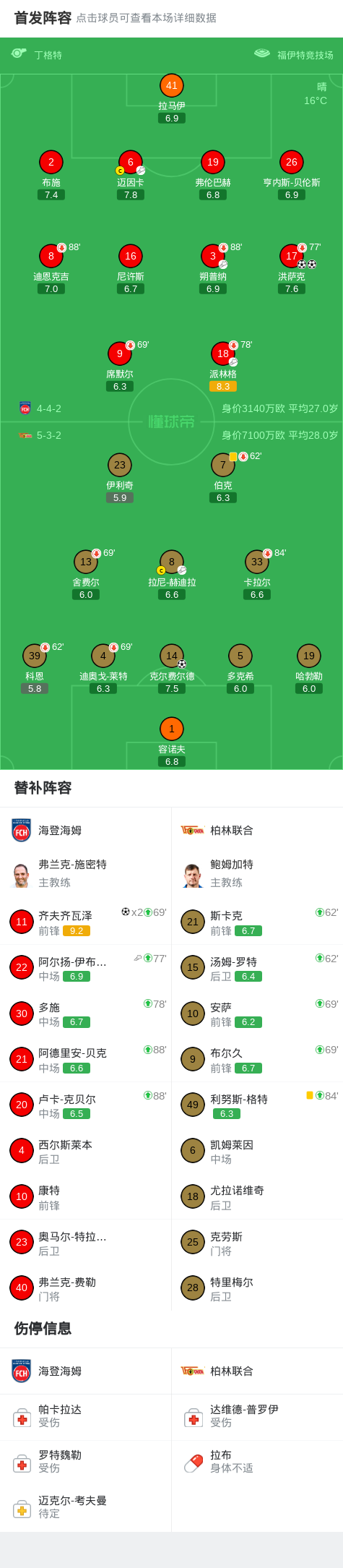 下半场补时第4分钟,海登海姆球员阿尔扬-伊布拉希莫维奇助攻齐夫齐瓦泽打入一球。