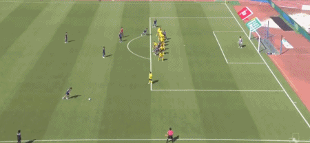 第29分钟,任意球开到禁区,中村帆高鱼跃冲顶稍稍偏出