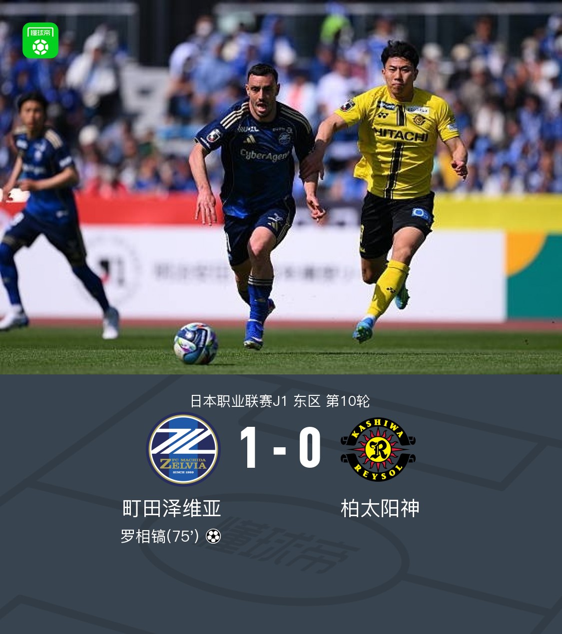 北京时间4月11日日本职业联赛J1 东区 第10轮,町田泽维亚主场对阵柏太阳神。町田泽维亚罗相镐破门。最终比分町田泽维亚 1–0 柏太阳神。