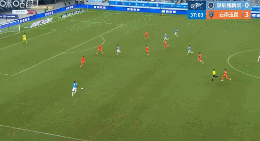 第38分钟,韦斯利斜传,卡尔采夫抽射破门,新鹏城1-3扳回一城!