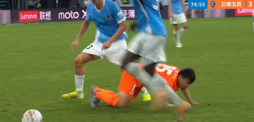 第6分钟,姜至鹏倒在禁区内,主裁判未予判罚