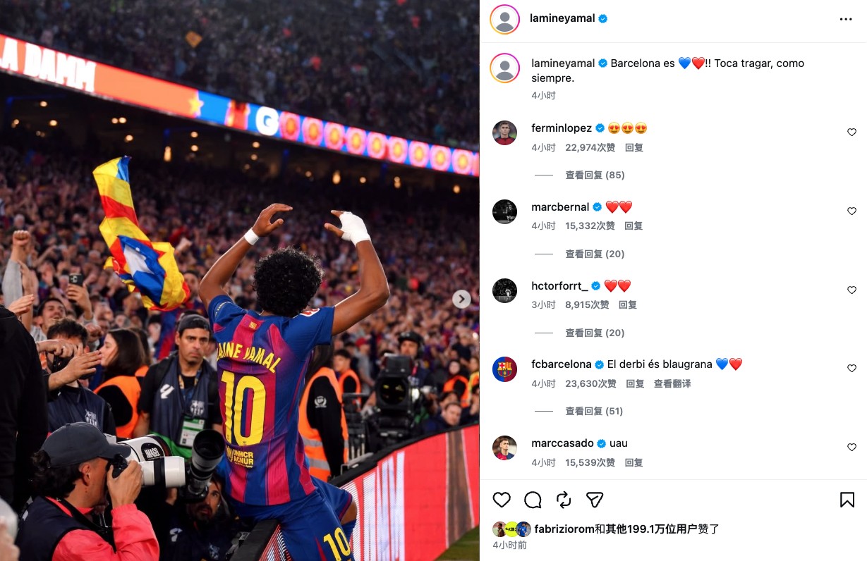 亚马尔在加泰罗尼亚德比后通过社交媒体发文庆祝巴萨取胜,并留下了一句火药味十足的话。
