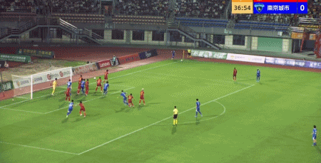 第37分钟,余梦辉角球开出,赵诚乐头球吊门将比分改写,南京城市1-0