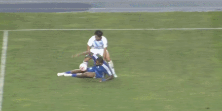 第40分钟,文俊杰阻挡多米尼克快发任意球,裁判出示黄牌警告