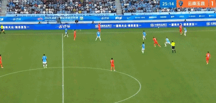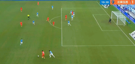 第20分钟,徐新与叶楚贵打出精彩配合后低射破门,云南1-0!