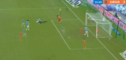 第34分钟,约尼查长传制导,奥斯卡头球破门,云南3-0!
