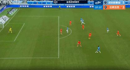 第38分钟,韦斯利斜传,卡尔采夫抽射破门,新鹏城1-3扳回一城!