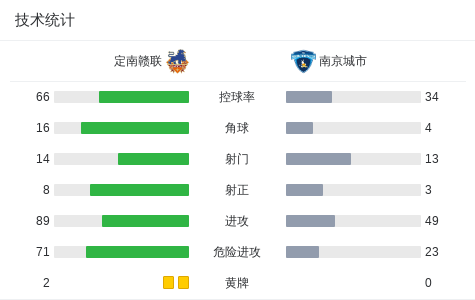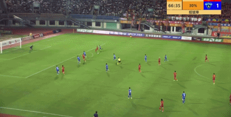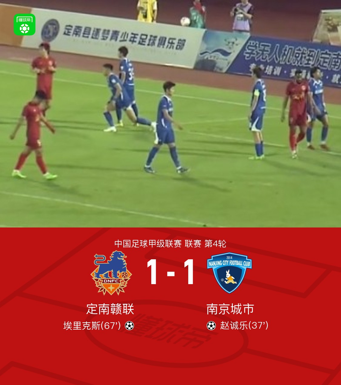 第67分钟,唐诗直塞,埃里克斯兜射破门扳平比分,定南赣联1-1南京城市