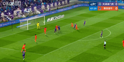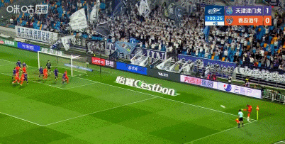 第77分钟,海牛后卫解围失误,谢蒂内打门折射入网,津门虎1-0领先海牛