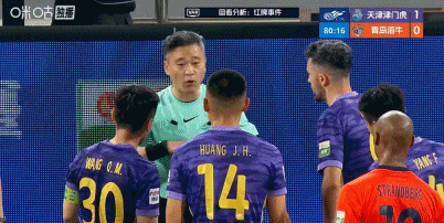 第81分钟,黄嘉辉踩踏吃到第二张黄牌,被红牌罚出场,津门虎十人应战