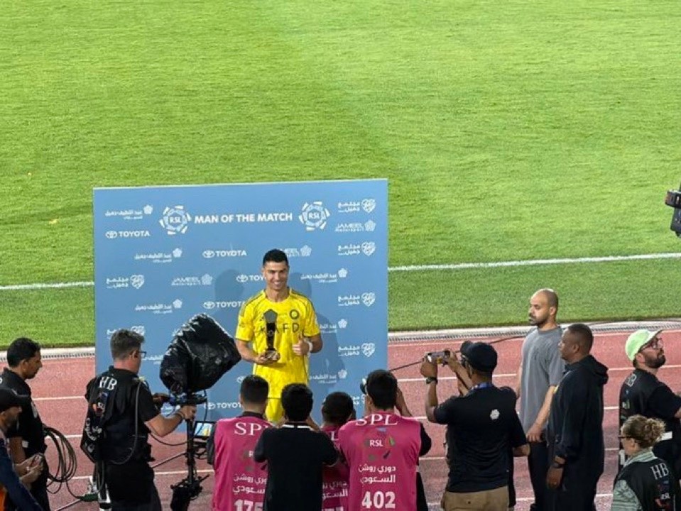 沙特联赛第28轮,利雅得胜利客场2-0击败阿科多,此役打入一球的C罗当选全场最佳球员。