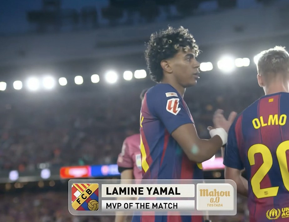西甲第31轮,巴塞罗那主场4-1击败西班牙人,此役贡献1球2助的亚马尔当选西甲官方全场最佳球员。