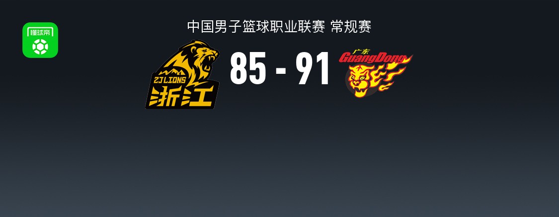 第四节广厦胡金秋拿下8分,广东徐杰拿下8分,最终广厦85-91不敌广东