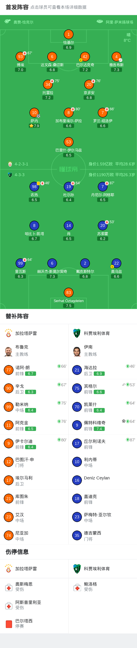 北京时间4月13日土耳其足球超级联赛 联赛 第29轮,加拉塔萨雷主场对阵科贾埃利体育。加拉塔萨雷萨内破门。科贾埃利体育佩特科维奇破门。最终比分加拉塔萨雷 1–1 科贾埃利体育。