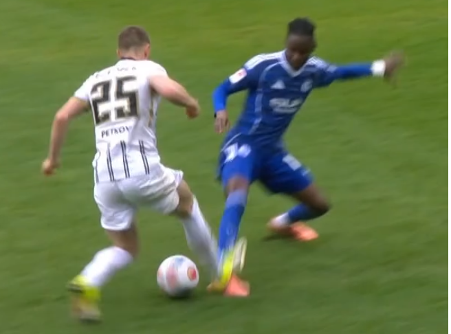 比赛进行到第51分钟,恩迪亚耶在一次防守的时候,疑似对埃弗斯堡球员佩特科夫犯规。当值裁判迈克尔·巴赫尔对身背一张黄牌的恩迪亚耶出示黄牌,最终恩迪亚耶被两黄罚下。但慢镜头显示,是佩特科夫先踩到恩迪亚耶的脚而导致摔倒。