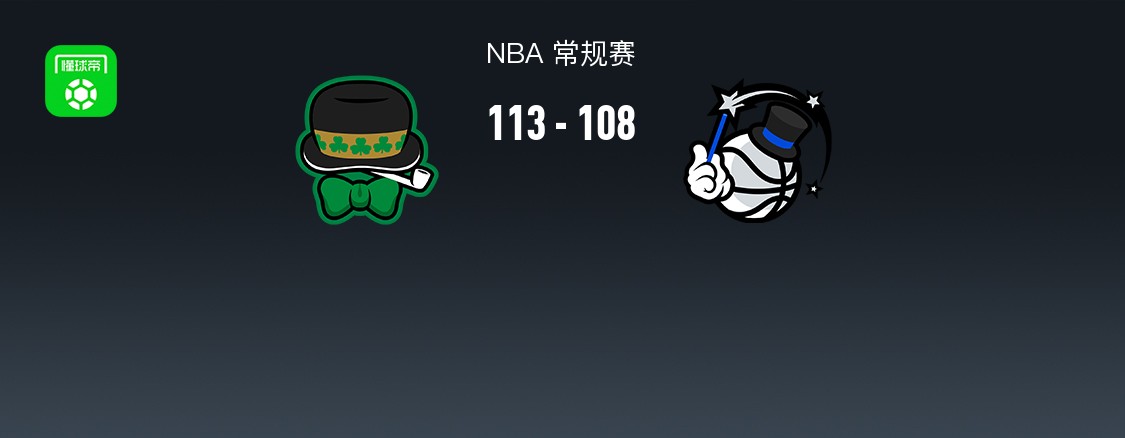 第四节凯尔特人加尔扎拿下7分,魔术布莱克拿下8分,最终凯尔特人113-108战胜魔术