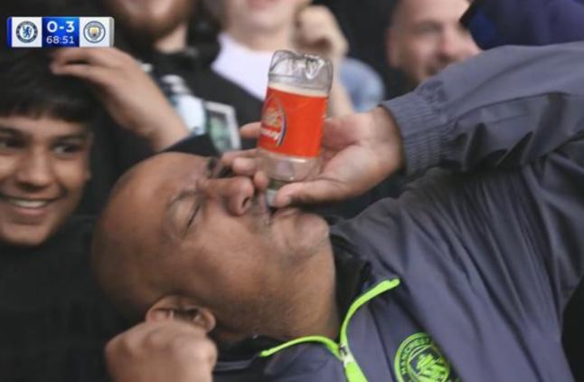 当地时间4月12日,在多库为曼城将比分扩大至3-0后,看台上一名极具镜头感的曼城球迷,举起印有阿森纳队徽的瓶子“对瓶吹”,此举瞬间走红网络。这名爆红的球迷名为塔尔-拉赫曼,他在今日接受了《镜报》的采访。