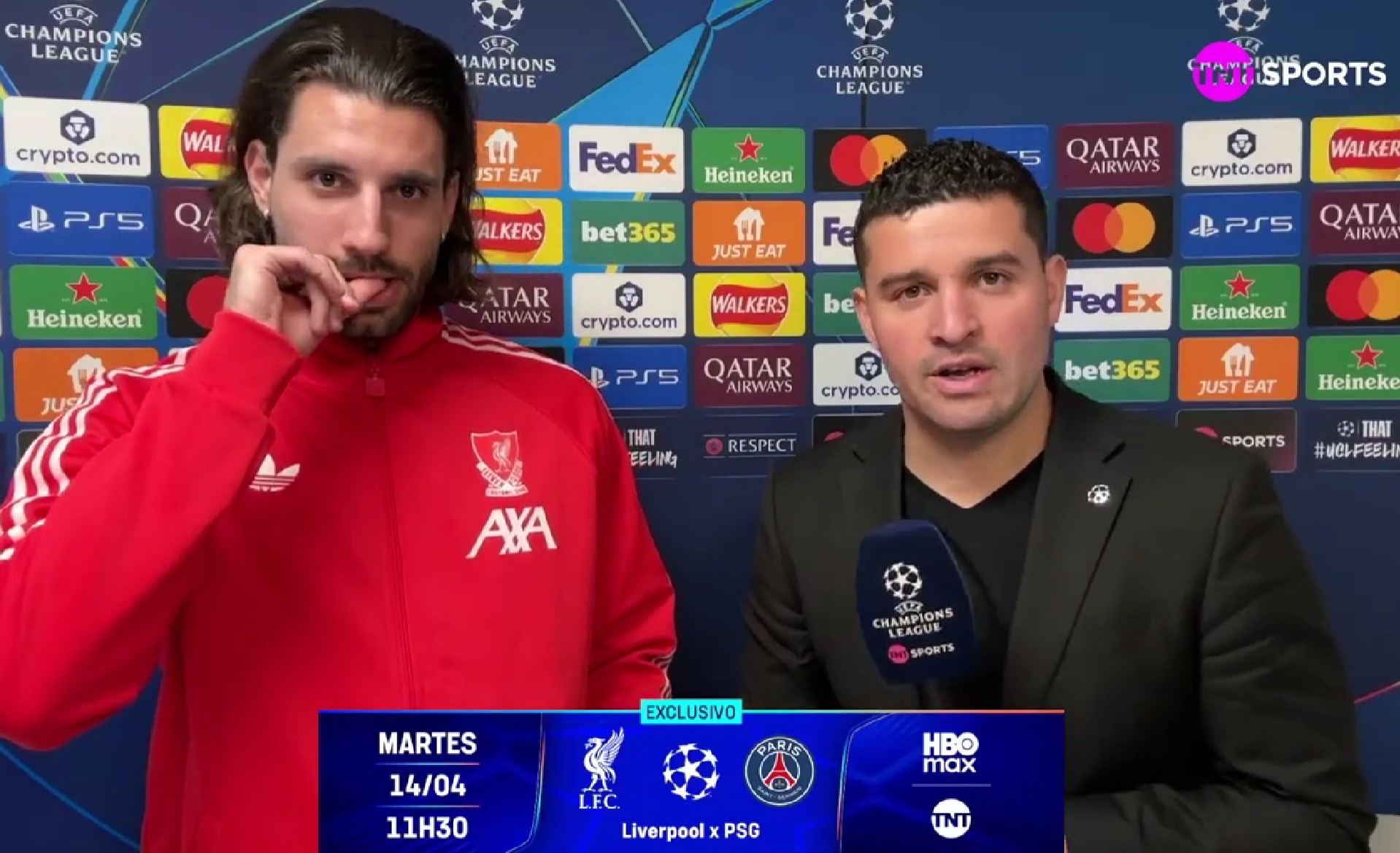在主场对阵巴黎的欧冠比赛前,利物浦中场索博斯洛伊接受了TNT体育的采访。