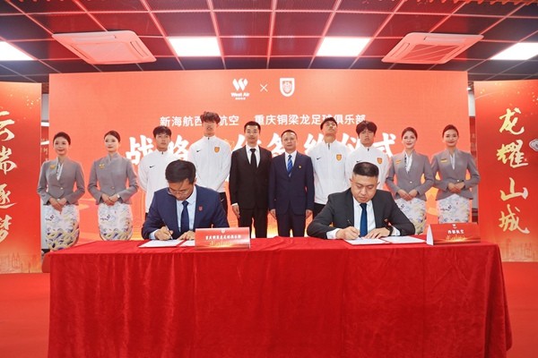 4月14日,新海航西部航空与重庆铜梁龙足球俱乐部在西部航空生产基地签署战略合作协议。双方将携手开启“航空+体育”跨界联动新篇章,依托西部航空覆盖国内外60余座城市的航线网络与出行保障优势,结合铜梁龙足球俱乐部的体育IP影响力,双方将在球队客场出行保障、品牌联合推广等领域深化合作,挖掘重庆本土航空与体育融合的文化价值。
