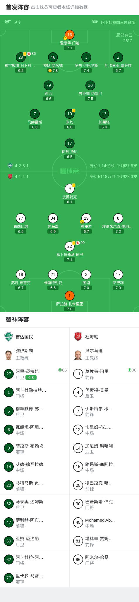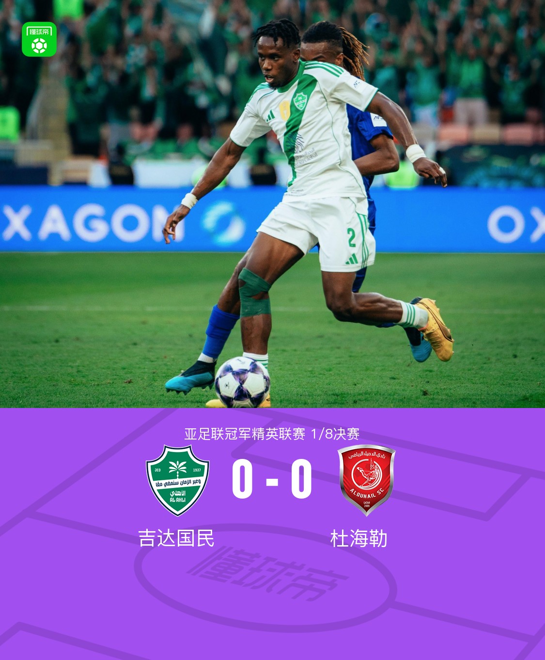 北京时间4月13日亚足联冠军精英联赛 1/8决赛,吉达国民对阵杜海勒。最终比分吉达国民 0–0 杜海勒,双方进入加时赛。