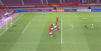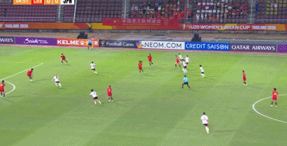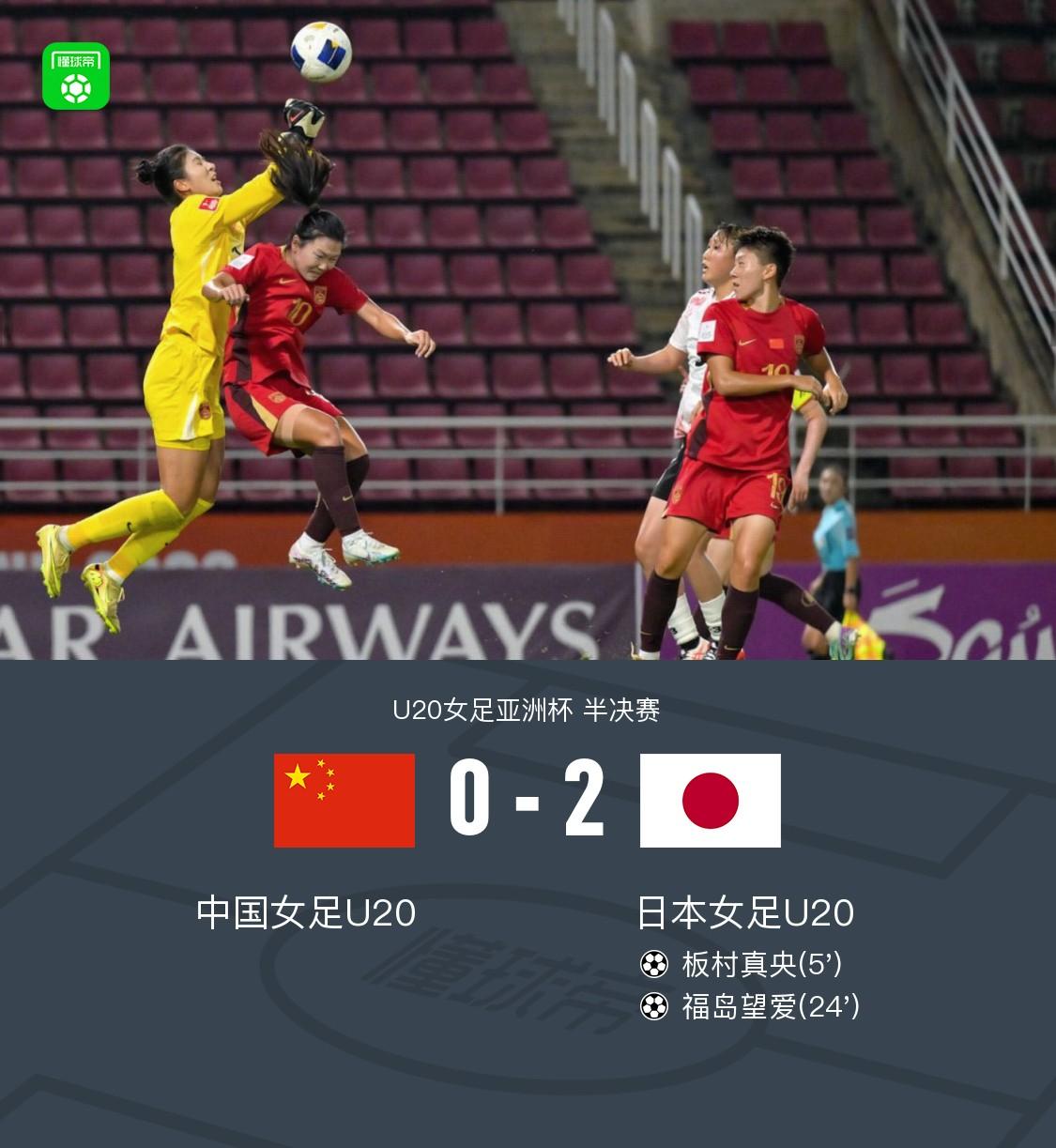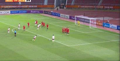 第24分钟,福岛望爱任意球直接破门,中国U20女足0-2落后日本U20女足
